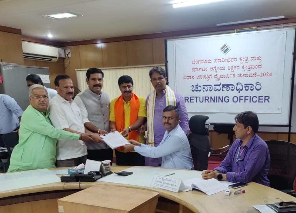 ಆಗ್ನೇಯ ಶಿಕ್ಷಕರ ಕ್ಷೇತ್ರದ ಬಿಜೆಪಿ ಹಾಗು ಜೆಡಿಎಸ್ ಪಕ್ಷದ ಅಭ್ಯರ್ಥಿ ಡಾ ವೈ.ಎ.ನಾರಾಯಣಸ್ವಾಮಿ, ಇಂದು ಬೆಂಗಳೂರಿನ ಶಾಂತಿನಗರದಲ್ಲಿನ ವಿಭಾಗೀಯ ಆಯುಕ್ತರ ಕಚೇರಿಯಲ್ಲಿ ಚುನಾವಣೆ ಅಧಿಕಾರಿಗಳಿಗೆ ನಾಮಪತ್ರ ಸಲ್ಲಿಸಿದರು.. ಈ ಸಂದರ್ಭದಲ್ಲಿ ಬಿಜೆಪಿ ರಾಜ್ಯಾಧ್ಯಕ್ಷ ಬಿ ವೈ ವಿಜಯೇಂದ್ರ ಅವರು, ವಿರೋಧ ಪಕ್ಷದ ನಾಯಕ ಆರ್ ಅಶೋಕ್ , ಮಾಜಿ ಮುಖ್ಯಮಂತ್ರಿ ಸದಾನಂದಗೌಡ , ಮಾಜಿ ಉಪ ಮುಖ್ಯಮಂತ್ರಿ ಗೋವಿಂದ ಕಾರಜೋಳ ಹಾಗು ಪಕ್ಷದ ಕಾರ್ಯಕರ್ತರು, ಶಿಕ್ಷಕ ವೃಂದ, ಬೆಂಬಲಿಗರು ಸಾವಿರಾರು ಸಂಖ್ಯೆಯಲ್ಲಿ ಉಪಸ್ಥಿತರಿದ್ದರು…