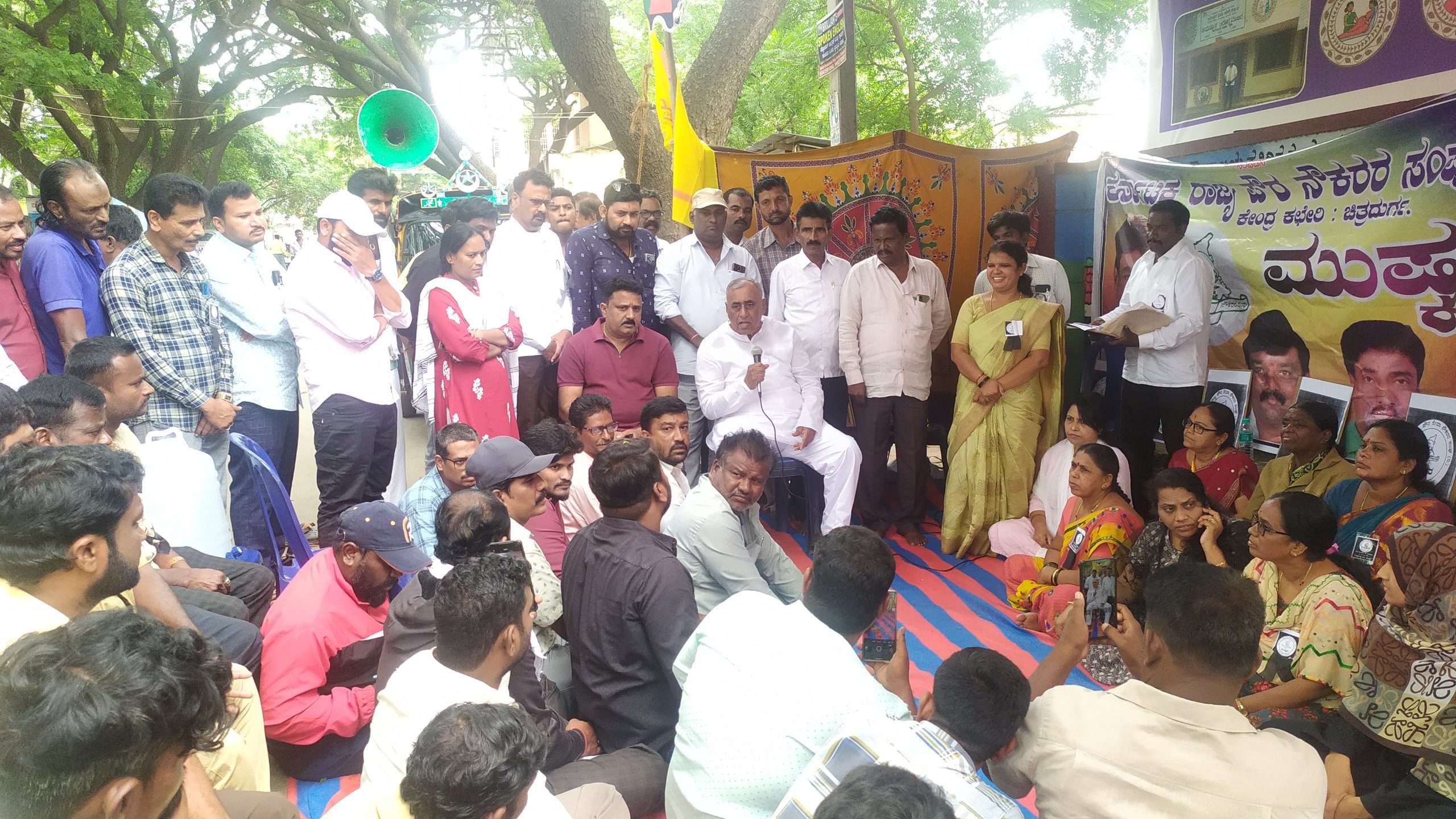 ಚಿತ್ರದುರ್ಗ ಮೇ.30: ಜಿಲ್ಲಾ ಪೌರಕಾರ್ಮಿಕರ ಸಂಘದ ದಿಂದ ನಗರಸಭೆಯ ಮುಂದೆ ಕಳೆದ ೨೭ ರಿಂದ ನಡೆಸುತ್ತಿರುವ, ಅನಿರ್ಧಿಷ್ಟ ಮುಷ್ಕರ ಸ್ಥಳಕ್ಕೆ ಇಂದು ಮಾಜಿ ಶಾಸಕ ಜಿ.ಎಚ್.ತಿಪ್ಪಾರೆಡ್ಡಿ ಭೇಟಿ ನೀಡಿದರು. ಬೇಡಿಕೆಗಳನ್ನು ಆಲಿಸಿದ ಮಾಜಿ ಶಾಸಕರು ಮಾತಾಡಿ,ನಾವು ವಿರೋಧಪಕ್ಷದಲ್ಲಿದ್ದೇವೆ. ವಿಧಾನಸಭೆಯಲ್ಲಿ ಮಾತಾಡಿ ನಿಮ್ಮ ಬೇಡಿಕೆಗಳನ್ನು ಈಡೇರಿಸಲು ಮುಖ್ಯಮಂತ್ರಿಗಳನ್ನು ಒತ್ತಾಯಿಸುವಂತೆ ಹೇಳುತ್ತೇನೆಂದು ಭರವಸೆ ನೀಡಿದರು. ರಾಜ್ಯದಲ್ಲಿರುವ ಎಲ್ಲಾ ಮಹಾನಗರ ಪಾಲಿಕೆ, ನಗರ ಸ್ಥಳೀಯ ಸಂಸ್ಥೆಗಳಲ್ಲಿ ಕಾರ್ಯ ನಿರ್ವಹಿಸುತ್ತಿರುವ ನೌಕರರು ಸಾಕಷ್ಟು ಸಂಕಷ್ಟಗಳನ್ನು ಅನುಭವಿಸುತ್ತಿದ್ದಾರೆ. ಆದರೂ ಕೂಡ ಸರ್ಕಾರ ನಿಮ್ಮಗಳತ್ತ ಗಮನಹರಿಸದೆ ನಿರ್ಲಕ್ಷ್ಯ ತೋರುತ್ತಿದೆ. ಕೋವಿಡ್ ಸಮಯದಲ್ಲಿ ಪೌರ ಕಾರ್ಮಿಕರು ಯಾರು ಮಾಡದ ಕೆಲಸವನ್ನು ಮಾಡಿದ್ದಾರೆ. ಮಾರಕ ರೋಗದ ಜೊತೆ ಕೆಲಸವನ್ನು ಮಾಡಿದ್ದಾರೆ. ಈ ಕೆಲಸವನ್ನು ಬೇರೆ ಯಾರು ಮಾಡಲ್ಲ, ಇವರಿಗೆ ಇವರೇ ಸಾಟಿ. ಇಂತಹರಿಗೆ ಸರ್ಕಾರ ಉತ್ತಮ ಸೌಕರ್ಯ ನೀಡಬೇಕಿದೆ. ಸರ್ಕಾರ ಬೇರೆ ನೌಕರರಿಗಿಂತ ಇವರಿಗೆ ಹೆಚ್ಚಿನ ಅದ್ಯತೆ ನೀಡಬೇಕೆಂದು ಸರ್ಕಾರವನ್ನು ಒತ್ತಾಯಿಸಿದರು.ಪೌರ ನೌಕರರನ್ನು ಸರ್ಕಾರಿ ನೌಕರರೆಂದು ಘೋಷಿಸಬೇಕು. ಸುಮಾರು ೨೫-೩೦ ವರ್ಷಗಳಿಂದ ಹೊರಗುತ್ತಿಗೆ ಮೇಲೆ ಕಾರ್ಯನಿರ್ವಹಿಸುತ್ತಿರುವ ವಾಹನ ಚಾಲಕರು, ನೀರು ಸರಬರಾಜು ಸಿಬ್ಬಂದಿಗಳು, ಲೋಡರ್ಸ್, ಗುತ್ತಿಗೆ ಲೆಕ್ಕಿಗರು, ಕ್ಲೀನರ್ ಪೌರಕಾರ್ಮಿಕರು, ಸೂಪರ್ ವೈಸರ್ಸ್, ಕಂಪ್ಯೂಟರ್ ಆಪರೇಟರ್ಗಳು, ಜ್ಯೂನಿಯರ್ ಪ್ರೋಗ್ರಾಸ್ ಸಿಬ್ಬಂದಿಗಳನ್ನು ಖಾಯಂ ಮಾಡುವಂತೆ ಸರ್ಕಾರವನ್ನು ಒತ್ತಾಯಿಸಿದ್ದು, ಕೆ.ಜಿ.ಐ.ಡಿ., ಜಿ.ಪಿ.ಎಫ್., ಜ್ಯೋತಿ ಸಂಜೀವಿನಿ, ಸೇರಿದಂತೆ ಸರ್ಕಾರಿ ನೌಕರರಿಗೆ ಸಿಗುವ ಸೌಲಭ್ಯವನ್ನು ಪೌರ ನೌಕರರಿಗೂ ಜಾರಿ ಮಾಡಬೇಕು. ೨೦೨೨-೨೩ನೇ ಸಾಲಿನಲ್ಲಿ ಪೌರಕಾರ್ಮಿಕರ ವಿಶೇಷ ನೇಮಕಾತಿಯಡಿ ಪೌರಕಾರ್ಮಿಕರು ನೇಮಕಾತಿ ಹೊಂದಿದ್ದು, ನೌಕರರಿಗೆ ಸರ್ಕಾರವು ನಗರ ಸ್ಥಳೀಯ ಸಂಸ್ಥೆ ನಿಧಿಯಿಂದ ವೇತನ ಪಡೆಯಲು ಆದೇಶಿಸಲಾಗಿದ್ದನ್ನು ರದ್ದುಪಡಿಸಿ, ಎಸ್.ಎಫ್.ಸಿ ಅನುದಾನದಡಿ ವೇತನ ನೀಡಬೇಕು ಎಂದು ಸರ್ಕಾರವನ್ನು ಆಗ್ರಹಿಸಿದರು.ಈಗ ನಾನು ಆಧಿಕಾರದಲ್ಲಿ ಇಲ್ಲ ಅಲ್ಲದೆ ನಮ್ಮ ಪಕ್ಷವೂ ಸಹಾ ಅಧಿಕಾರವನ್ನು ನಡೆಸುತ್ತಿಲ್ಲ. ನಿಮ್ಮ ಪರವಾಗಿ ನಾನು ಯಾವಾಗಲೂ ಇದ್ದೇನೆ ನನ್ನ ಅಧಿಕಾರದ ಅವಧಿಯಲ್ಲಿ ಹಲವಾರು ಪೌರ ಕಾರ್ಮಿಕರನ್ನು ಕೆಲಸಕ್ಕೆ ಸೇರಿಸಿದ್ದೇ, ಅವರಿಗೆ ಮನೆಗಳನ್ನು ಸಹಾ ನೀಡಿದ್ದೇ ಎಂದು ಸ್ಮರಿಸಿಕೊಂಡರು. ಸಂದರ್ಭದಲ್ಲಿ ನಗರಸಭಾ ಸದಸ್ಯರಾದ ಶ್ರೀನಿವಾಸ್, ಹರೀಶ್, ದೀಪು, ಮಾಜಿ ಸದಸ್ಯರಾದ ಕೃಷ್ಣಮೂರ್ತಿ, ರವಿಶಂಕರ್, ಪೌರಕಾರ್ಮಿಕರ ಸಂಘದ ಸಿ.ರೇಣುಕಾ, ಎಸ್.ಪಿ.ಲವ, ಪುಟ್ಟಸ್ವಾಮಿ, ಸೇರಿದಂತೆ ಪೌರಕಾರ್ಮಿಕರು ಭಾಗವಹಿಸಿದ್ದರು.