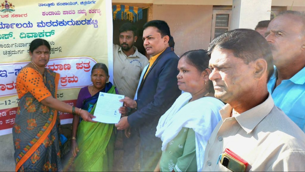 ಗ್ರಾಮ ಪಂಚಾಯಿತಿಗಳ ಮಟ್ಟದಲ್ಲಿ ಇ ಸ್ವತ್ತು ಪಡೆಯುವುದು ಸಾರ್ವಜನಿಕರಿಗೆ ಅನಾವಶ್ಯಕ ವಿಳಂಬವಾಗುತ್ತಿದ್ದು, ಅದಕ್ಕಾಗಿ ತಿಂಗಳುಗಟ್ಟಲೆ ಅಲೆಯುವುದು ಹಾಗೂ ಮಧ್ಯವರ್ತಿಗಳ ಹಾವಳಿ ಹೆಚ್ಚಾಗಿದ್ದು, ಇದನ್ನು ತಡೆಗಟ್ಟಲು ಚಿತ್ರದುರ್ಗ ಜಿಲ್ಲಾ ಪಂಚಾಯಿಸಿ ಸಿಇಓ ದಿವಾಕರ್ ಮನೆ ಮನೆ ಬಾಗಿಲಿಗೆ ಇ ಸ್ವತ್ತು ಎಂಬ ಯೋಜನೆಯನ್ನು ರೂಪಿಸಿ ಜಾರಿಗೆ ತಂದು ಇಂದು ಅದನ್ನು ಕಾರ್ಯಗತಗೊಳಿಸಿದ್ದಾರೆ.ಅದರಂತೆ ಪೈಲಟ್ ಪ್ರಾಜೆಕ್ಟ್ ರೀತಿ ಚಿತ್ರದುರ್ಗದ ಮಠದ ಕುರುಬರಹಟ್ಟಿ ಗ್ರಾಮದಲ್ಲಿ ಗ್ರಾಮ ಪಂಚಾಯಿತಿ ವ್ಯಾಪ್ತಿಯಲ್ಲಿ ಬರುವ ನಿವಾಸಿಗಳ ದಾಖಲೆಗಳನ್ನು 10 ರಿಂದ 15 ದಿನಗಳ ಮೊದಲು ಗ್ರಾಮ ಪಂಚಾಯಿಸಿ ಸಿಬ್ಬಂದಿಗಳು ಸಂಗ್ರಹಿಸಿ ನಿಯಮಾನುಸಾರ ಪರಿಶೀಲಿಸಿದ್ದಾರೆ. ಎಲ್ಲಾ ತೆರಿಗೆಯನ್ನು ಕಟ್ಟಿದ್ದಾರೆ ಎಂದು ಖಾತ್ರಿಯಾದ ನಂತರ ಅವರುಗಳ ಮನೆ ಮನೆಗೆ ಹೋಗಿ ಜಿಲ್ಲಾ ಪಂಚಾಯತ್ ಮುಖ್ಯ ಕಾರ್ಯ ನಿರ್ವಹಣಾಧಿಕಾರಿಗಳೇ ವಿತರಿಸಿದ್ದಾರೆ. ಇದರಂತೆ ಮಟಡದ ಕುರುಬರಹಟ್ಟಿಯ ಪಂಚಾಯಿತಿ ವ್ಯಾಪ್ತಿಯ ಗುತ್ತಿನಾಡು, ಎಂಆರ್ ಕಾಲೋನಿಯ ನಿವಾಸಿಗಳಿಗೆ ಸುಮಾರು 80ಕ್ಕೂ ಹೆಚ್ಚು ಇ ಸ್ವತ್ತು ಪ್ರಮಾಣ ಪತ್ರಗಳನ್ನು ನಿವಾಸಿಗಳ ಮನೆ ಬಾಗಿಲಿಗೆ ಹೋಗಿ ಸಿಇಓ ಅವರೇ ಸ್ವತಃ ವಿತರಣೆ ಮಾಡಿದ್ದಾರೆ. ಈ ಯೋಜನೆಯಿಂದಾಗಿ ಪಂಚಾಯಿತಿಗೆ 15 ದಿನಗಳಲ್ಲಿ ಸುಮಾರು 4 ಲಕ್ಷ ತೆರಿಗೆ ಸಂಗ್ರಹವಾಗಿದೆ. ತೆರಿಗೆಯನ್ನು ಜನರು ತಾವೇ ಸ್ವತಃ ಪಾವತಿಸಿದ್ದಾರೆ. ಇಂತಹ ಯೋಜನೆಯಿಂದ ಪಂಚಾಯಿತಿ ಮಟ್ಟದಲ್ಲಿ ನಡೆಯುತ್ತಿದ್ದ ಭ್ರಷ್ಟಾಚಾರ, ಹಾಗೂ ವಿಳಂಬ ನೀತಿಯಿಂದ ಜಿಲ್ಲಾ ಪಂಚಾಯಿತಿಯನ್ನು ನೋಡುವ ದೃಷ್ಠಿಕೋನವೇ ಬದಲಾಗಿದೆ. ಈ ಸ್ವತ್ತು ಪಡೆಯಲು ಮೊದಲು ಕಷ್ಟವಾಗುತ್ತಿತ್ತು. ಆದರೆ ಮನೆ ಬಾಗಿಲಿಗೆ ಬಂದು ಇಸ್ವತ್ತು ವಿತರಣೆ ಮಾಡುವ ಯೋಜನೆ ರೂಪಿಸಿದ್ದು, ಉತ್ತಮವಾಗಿದೆ ಎಂದು ಗ್ರಾಮ ಪಂಚಾಯಿತಿ ಅಧ್ಯಕ್ಷರು ಹಾಗೂ ಸದಸ್ಯರು ಅಭಿಪ್ರಾಯ ವ್ಯಕ್ತಪಡಿಸಿದ್ದಾರೆ.ಈ ಸಮಯದಲ್ಲಿ ಜಿಲ್ಲಾ ಪಂಚಾಯಿತಿ ಉಪಕಾರ್ಯದರ್ಶಿ ರಂಗಸ್ವಾಮಿ,ಪಂಚಾಯಿತಿ ಅಭಿವೃದ್ದಿ ಅಧಿಕಾರಿಗಳು ಉಪಸ್ಥಿತರಿದ್ದರು