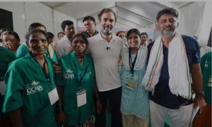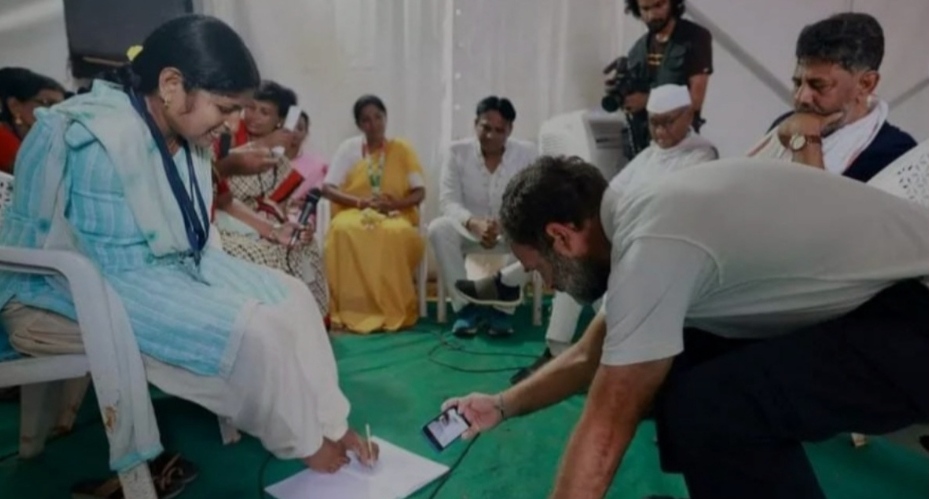 ಹುಟ್ಟಿನಿಂದಲೇ ತನ್ನ ಎರಡು ಕಾಲುಗಳ ಸಹಾಯದಿಂದ ಕಾಲುಗಳನ್ನೆ ಕೈಗಳನ್ನಾಗಿ ಬಳಸಿಕೊಂಡು ದುಂಡಗೆ ಬರೆಯುವ ವಿಜಯ ನಗರದ ಕೂಡ್ಲಿಗಿ ತಾಲೂಕಿನ ಗುಂಡುಮುಣುಗು ಗ್ರಾಮದ ಲಕ್ಷ್ಮಿ ದೇವಿಯ ಜೀವನೋತ್ಸಾಹ ಕಂಡು ರಾಹುಲ್ ಗಾಂಧಿ ಫುಲ್ ಫಿದಾ ಆಗಿದ್ದಷ್ಟೆ ಅಲ್ಲದೆ ತಮ್ಮ ಮೊಬೈಲ್ ನಲ್ಲಿ ಅದನ್ನು ಸೆರೆ ಹಿಡಿದುಕೊಂಡಿದ್ದು ವಿಶೇಷವಾಗಿತ್ತು.