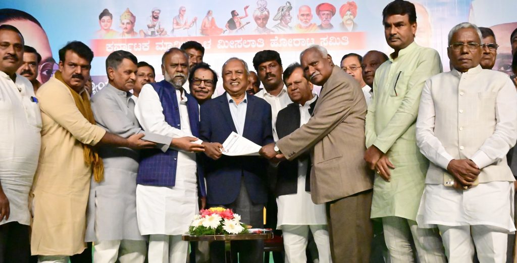 ಕರ್ನಾಟಕ ಮಾದಿಗ ಒಳ ಮೀಸಲಾತಿ ಹೋರಾಟ ಸಮಿತಿ ಬೆಂಗಳೂರಿನ ಅಂಬೇಡ್ಕರ್ ಭವನದಲ್ಲಿ ಗುರುವಾರ ಸಂಜೆ ಆಯೋಜಿಸಿದ್ದ ಮಾದಿಗ ಮತ್ತು ಸಂಬಂಧಿತ ಜಾತಿಗಳ ಸಮನ್ವಯ ಸಭೆಯಲ್ಲಿ ರಾಜ್ಯದ ವಿವಿಧ ಭಾಗಗಳಿಂದ ಆಗಮಿಸಿದ್ದ ಸಹಸ್ರಾರು ಮುಖಂಡರ ಮನವಿ ಸ್ವೀಕರಿಸಿ ಮಾತನಾಡಿದರು.